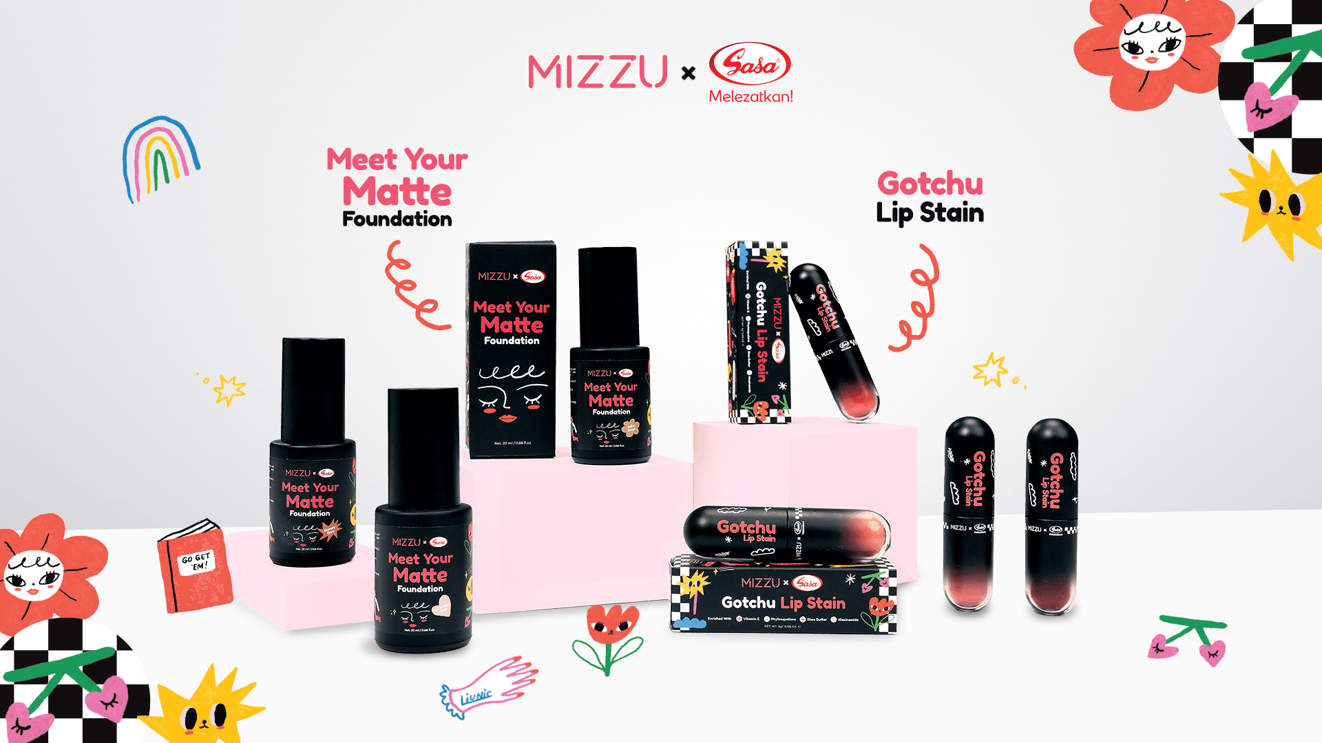 Sebuah kolaborasi antara Mizzu dan SASA ini menghadirkan dua produk makeup yang memilik klaim skincare infused. Dikemas dengan packaging yang unik berwarna hitam dan memiliki desain yang sangat Gen Z ini ditargetkan untuk anak muda yang menyukai pemakaian makeup ringan.