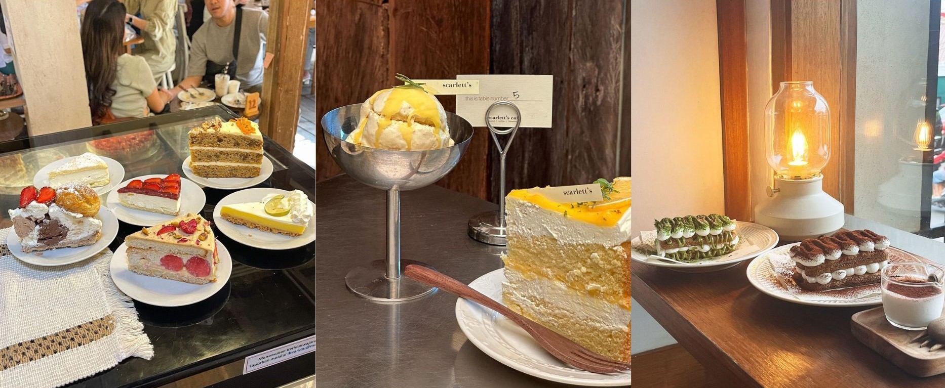 Salah satu dessert cafe yang sempat viral dan selalu berseliweran ketika ada konten rekomendasi tempat untuk kaum pencinta manis di TikTok yaitu Scarlett’s Cafe! Cafe yang terletak di Senopati ini menghadirkan berbagai macam makanan manis yang bisa kamu nikmati, serta dilengkapi dengan ambience yang super cozy! Salah satu menu best seller milik mereka adalah Poured Tiramisu, Watermelon Sorbet, dan Victoria’s Lemon Cake.